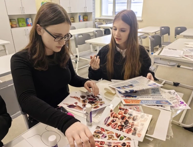 В ходе практической части школьники создавали собственные работы, используя журнальные вырезки, бумагу и другие подручные материалы.